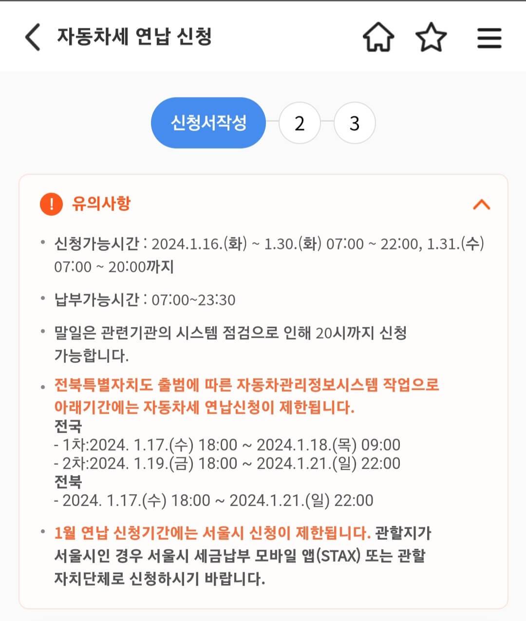 ※ 1월 연납 신청기간에는 서울시 신청이 제한됩니다.